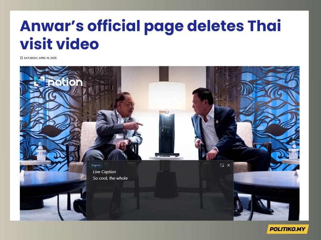 Lawatan rasmi Perdana Menteri Malaysia, Datuk Seri Anwar Ibrahim, ke Thailand baru-baru ini membuka lembaran baharu dalam hubungan diplomatik dua hala, namun turut dicemari dengan insiden kecil tetapi signifikan — pemadaman satu hantaran video di media sosial rasmi beliau.