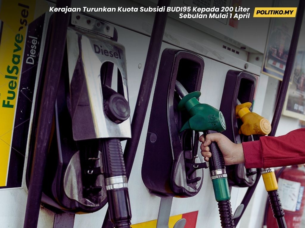 Kerajaan Turunkan Kuota Subsidi BUDI95 Kepada 200 Liter Sebulan Mulai 1 April